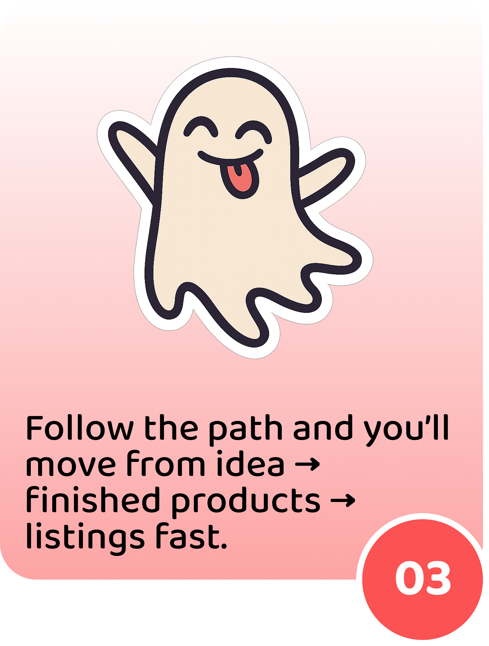 Inside Section 8, you’ll see exactly how to launch and list your first product in just one day — from idea → stickers → live listing.