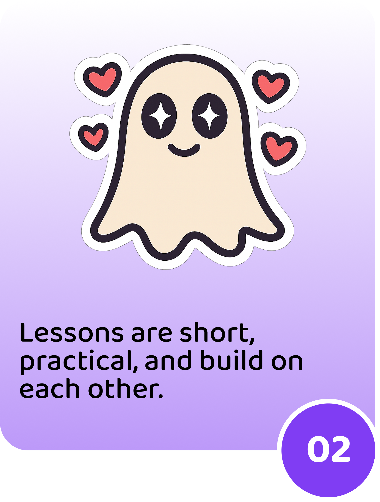 No guesswork. Every lesson includes the exact prompts I use, ready to copy and paste — so you never waste time wondering what to type.