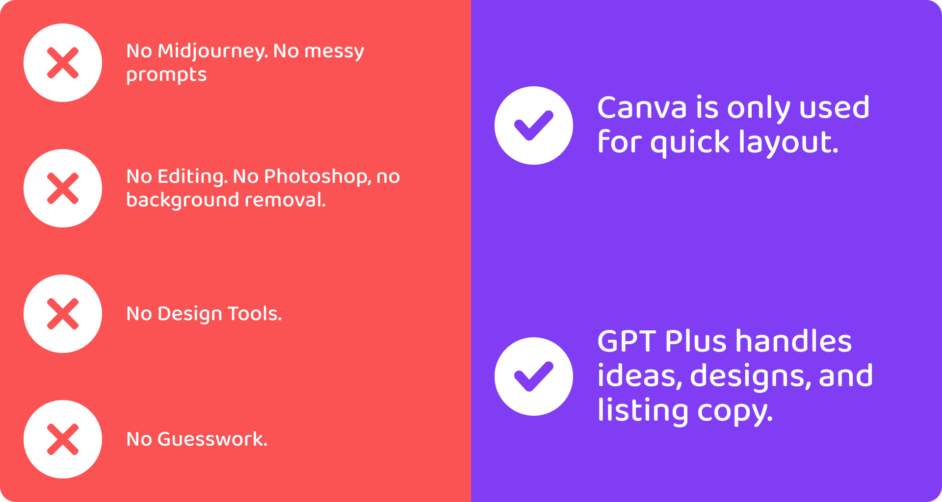 Most sellers are stuck wasting hours with Midjourney or Photoshop.